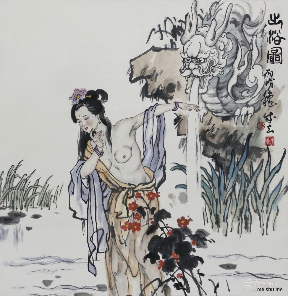 塑造人物是赵先生的强项。画家将别人画惯了的传统题材画得高雅脱俗,将神仙赋予人格化的表现,将古人赋予新的生命,并将作品主题赋予深邃的意境。如《驱邪迎福》一图,行笔走线顿挫起伏,积墨设色强烈炫目,宛若钟馗刚正不阿之性情。再如《出浴图》,表现了象征封建威严的龙头泉下出浴的宫妃形象,她那妩媚的眉眼间流露出难以察觉的淡淡哀愁……赵先生的人物画借鉴了陈洪绶、黄慎、任伯年等古代大师以及当代诸多人物画大家的画法,工写得当,收放自如,兼融并蓄,自成一格。