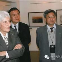 张松与巴黎国际艺术城负责人布鲁诺夫人参观安徽美术作品展